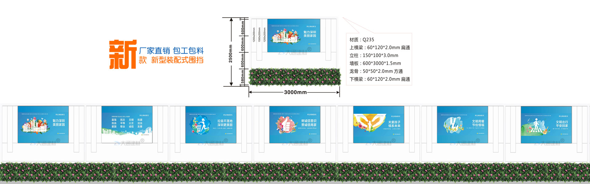 A類裝配式鋼結構烤漆圍擋-工地施工圍擋A款-深圳圍擋